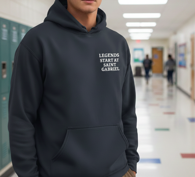 This shirt comes with the legends text on the left chest and the SGCS building logo full back. Color of printing will be write or navy depending on color of garment chosen.