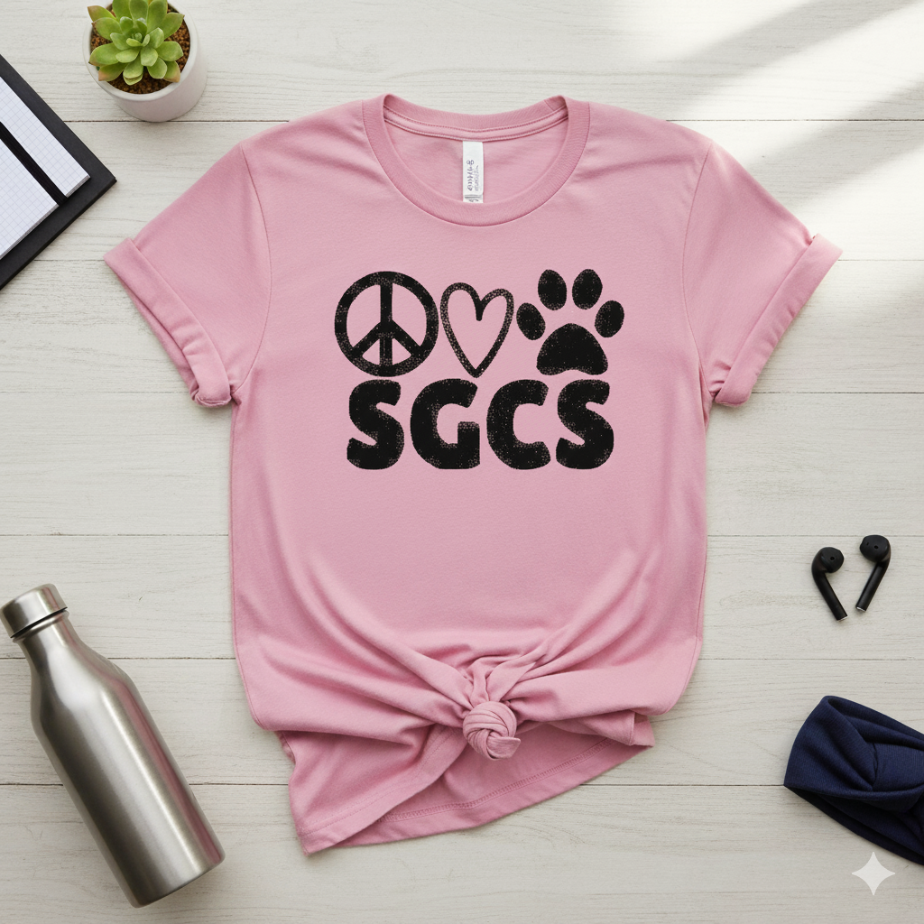 Unisex T-Shirt with SGCS Peace Love Cougar Logo Short or Long Sleeve. Available in kid’s and adult sizes.